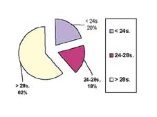 28 gestacional weeks. The perinatal deaths are 30%, ten cases (24%) required